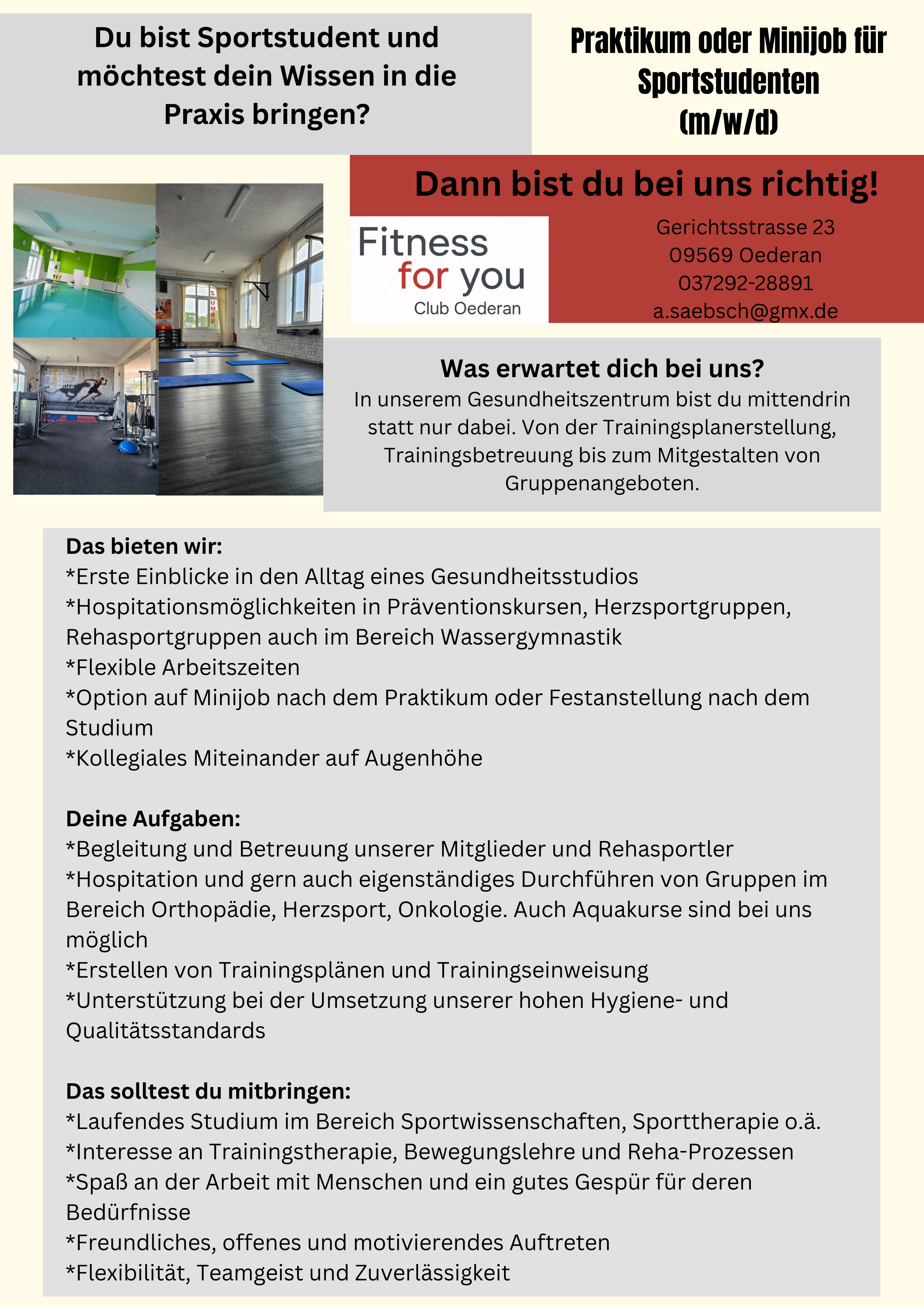 Wir haben die Möglichkeit, Rehasport im Wasser anzubieten.
